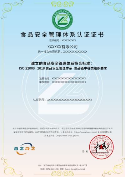 ISO 22000食品安全管理體系認證